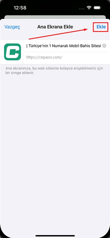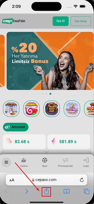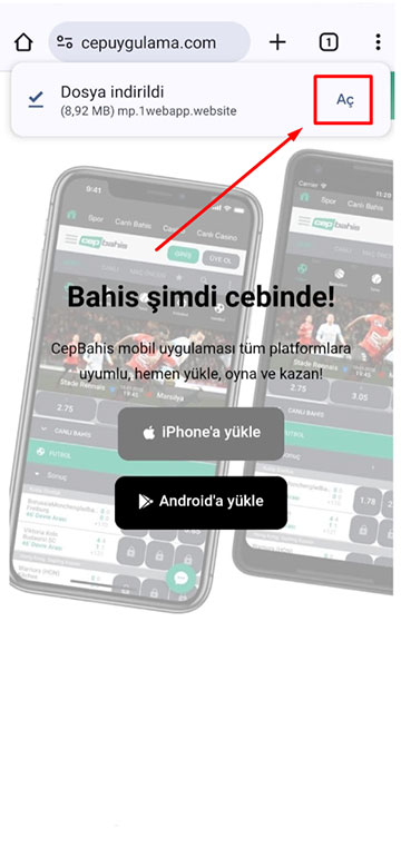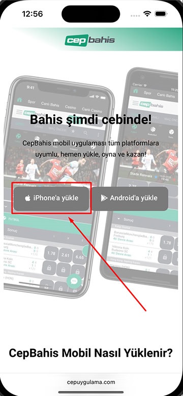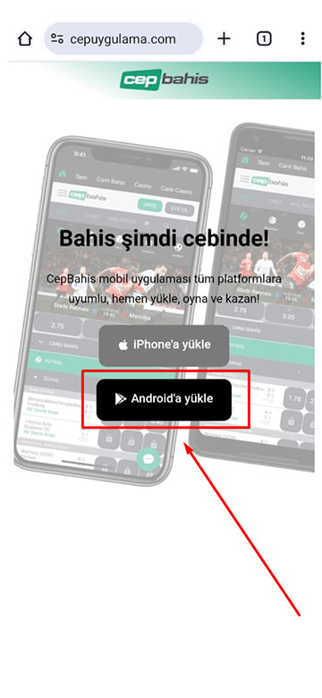 Bahis şimdi cebinde! CepBahis mobil uygulaması tüm platformlara uyumlu, hemen yükle, oyna ve kazan! Android'a yükle iPhone'a yükle Bahis şimdi cebinde! CepBahis mobil uygulaması tüm platformlara uyumlu, hemen yükle, oyna ve kazan! Android'a yükle iPhone'a yükle CepBahis Mobil Nasıl Yüklenir? Uygulamayı iPhone cihaza yüklemek için bu adımları takip edin. Birinci adım: IPhone cihazınızdan Safari uygulamasını açınız. İkinci adım: Bu butona tıklayınız. Üçüncü adım: Bu butona tıklayınız. Dördüncü adım: Bu butona tıklayınız. Beşinci adım: Uygulamayı açınız. Uygulamayı Android cihaza yüklemek için bu adımları takip edin. Birinci adım: Android cihazınızdan Chrome uygulamasını açınız. İkinci adım: İndir butonuna tıklayınız. Üçüncü adım: Aç butonuna tıklayınız. Dördüncü adım: Telefona yükle butonuna tıklayınız. Beşinci adım: Uygulamayı açınız. Altıncı adım: Hemen kayıt ol ve kazanmaya başla. CepBahis 2025, Şans oyunları bağımlılık yapabilir, lütfen bilinçli oynayınız.